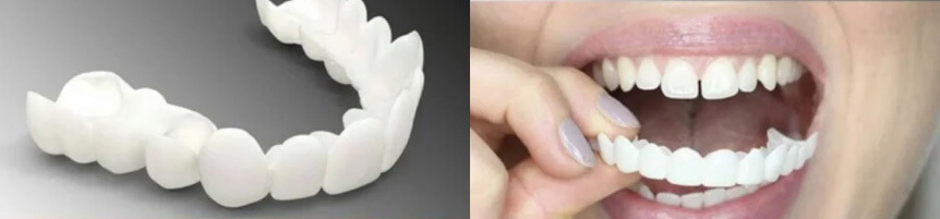 వెనియర్స్ ఒక ప్రత్యేక పదార్థంతో తయారు చేయబడ్డాయి, కాబట్టి అవి దంతాలకు సున్నితంగా సరిపోతాయి, వాటి చుట్టూ రక్షిత అవరోధాన్ని సృష్టిస్తాయి. అవి ప్రత్యేకమైన ఫాస్టెనర్ను ఉపయోగించి ఇన్స్టాల్ చేయబడతాయి, అవి వాటిని సురక్షితంగా కట్టివేస్తాయి, అవి ఊహించని క్షణంలో జారిపోకుండా నిరోధించబడతాయి. అవి పూర్తిగా బహుముఖంగా మారాయి, పదార్థం అనువైనది మరియు దంతాల ఆకారంలో ఉంటుంది.
